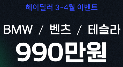 [헤이딜러] 벤츠 / BMW / 테슬라, 990만원 특가 이벤트