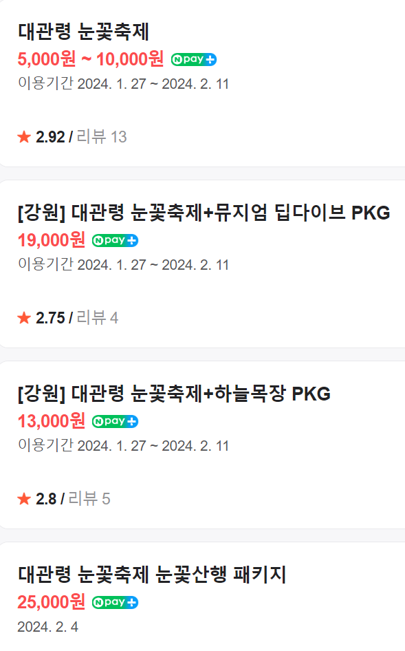 | 대관령 전통문화 체험 | 대관령 목장 양먹이 체험 | 자작나무 오솔길 |